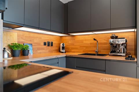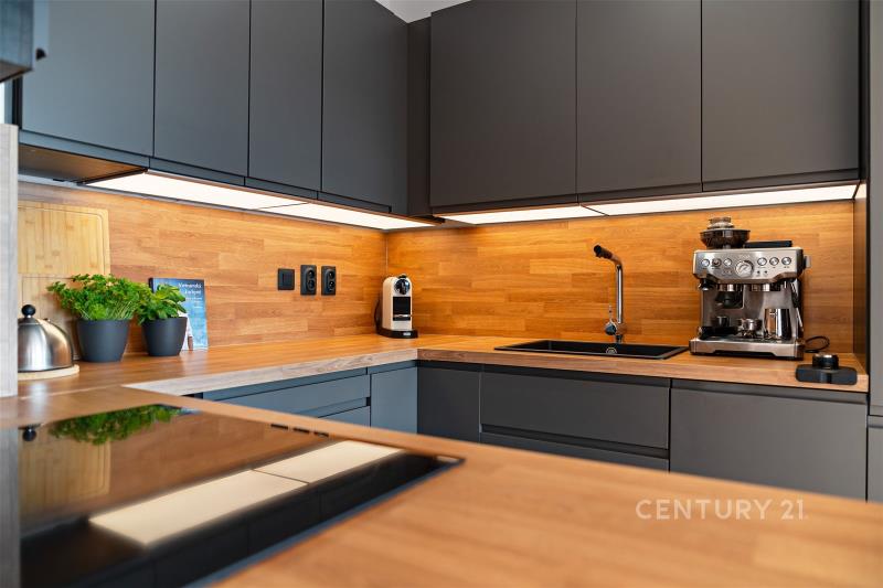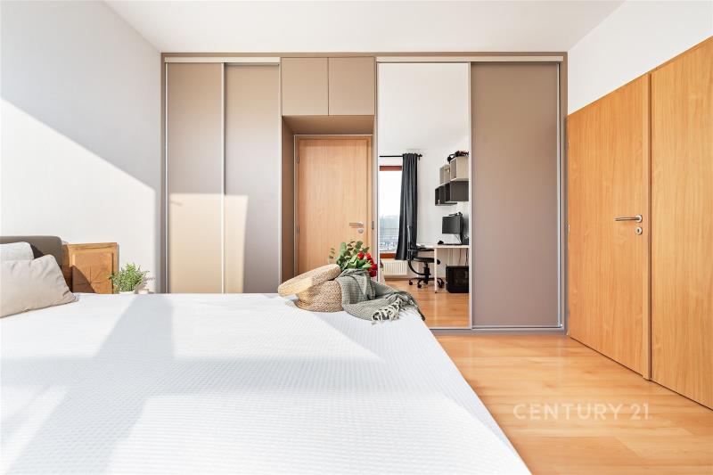 Byt je mimořádně světlý díky velkým oknům, která zajišťují dostatek denního světla po celý den a podtrhují vzdušnost interiéru. Součástí bytu je nová kuchyňská linka vyrobená na míru, navržená s důrazem na funkčnost, elegantní design a dostatek úložného prostoru. V ložnici se nachází vestavěná skříň, která přirozeně doplňuje interiér a nabízí praktické řešení úložných potřeb. Velkou přidanou hodnotou bytové jednotky je klimatizace, kterou v létě jistě oceníte.