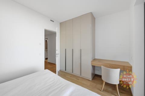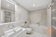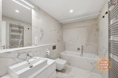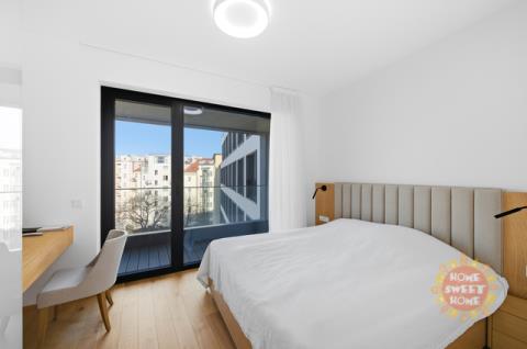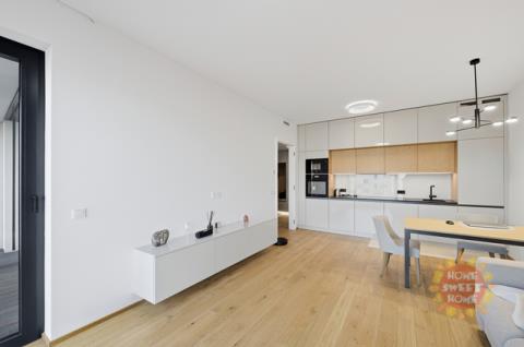 Jedinečný moderní byt o dispozici 2+kk k prodeji. Hezký designový byt s výměrou 57,4 m² s lodžií/terasou (4,9 m²) je situovaný v 5. nadzemním podlaží novostavby projektu Victoria Palace od společnosti PENTA Real Estate, kolaudace v roce 2024. Součástí prodeje je garážové stání v podzemní garáži a zděný sklep. Oblíbená lokalita s veškerou občanskou vybaveností a skvělou dopravní dostupností autem i MHD, jen pár kroků od metra Dejvická. Prakticky řešený byt sestává z předsíně s vestavěnými skříněmi na míru, obývacího pokoje s kuchyňským koutem a vstupem na terasu, která je přístupná také z ložnice. Zázemí bytu doplňuje moderní koupena s vanou a WC a komora s pračkou a sušičkou. Byt se prodává včetně vybavení v pořizovací hodnotě 1.272.000 Kč (již součástí kupní ceny). Díky nájemní smlouvě je byt zajímavou investicí - aktuální nájem je 37.000 Kč/měsíc + poplatky. V případě zájmu o koupi pro vlastní bydlení je možné smlouvu vypovědět. Vysoký komfort bydlení zajišťuje podlahové vytápění, centrální rekuperace vzduchu, hliníková okna s izolačním trojsklem a venkovními roletami, třívrstvé dubové podlahy, velkoformátové keramické obklady. Budova má energetickou třídu B. Poskytuje svým obyvatelům recepci 24/7 a reprezentativní společné prostory. K dispozici je také upravený vnitroblok plný zeleně.