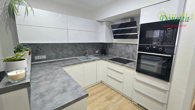 Byt je vybaven kuchyňskou linkou na míru včetně spotřebičů, vestavěnou skříní v chodbě, dvojlůžkem v ložnici a pracovnou. Nabízí se tedy se základním vybavením, které vidíte na obrázcích. K bytové jednotce rovněž náleží sklep 2 m2 v přízemí domu a parkovacího stání o výměře 12 m2, které je součástí kupní ceny a z bytu je na stání vidět.