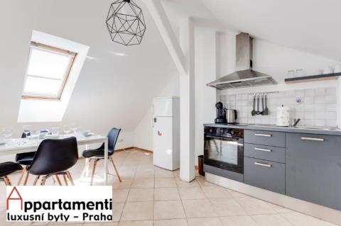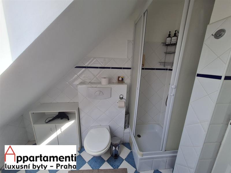 Tento podkrovní ateliér o velikosti 58,2m2 má jednu ložnici, prostorný obývací pokoj s kuchyňským koutem a s koupelnou se sprchovým koutem toaletou a bidetem, umyvadlem. Ve společných prostorách je balkón. Apartmán se nalézá přímo v historickém srdci hlavního města Prahy, v blízkosti Václavského náměstí. V současné době je dlouhodobě pronajímán a představuje tak vynikající investiční příležitost.