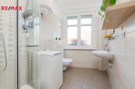 - Z obývacího pokoje je vstup do koupelny se sprchovým koutem a toaletou