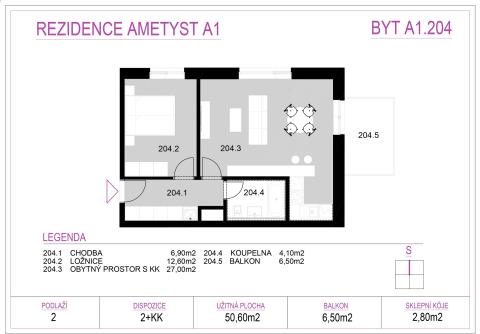Ve výhradním zastoupení investora nabízíme k prodeji moderní a prostorný byt 2+kk s balkonem a sklepní kójí v prestižním rezidenčním projektu Rezidence Ametyst v Tišnově. Projekt spojuje kvalitní architekturu s promyšleným konceptem komfortního bydlení v klidném a zeleném prostředí. Součástí areálu jsou relaxační zóny a možnost parkovacího stání přímo u domu. Tišnov je malebné město s kompletní občanskou vybaveností – najdete zde obchody, kavárny, restaurace, školy i zdravotnická zařízení. Výborná dopravní dostupnost do Brna (cca 25 minut autem nebo vlakem) dělá z této lokality skvělou volbu pro každodenní dojíždění. Milovníky přírody potěší blízkost Přírodního parku Svratecká hornatina, který nabízí krásné turistické trasy, cyklostezky i místa pro aktivní odpočinek. Klidná a bezpečná čtvrť je ideální jak pro vlastní bydlení, tak jako investiční příležitost s dlouhodobou hodnotou. Stavba je již zahájena – zajistěte si své nové bydlení včas. Více informací najdete na webových stránkách projektu Rezidence Ametyst, nebo nás neváhejte kontaktovat. Dispozice bytu: chodba (6,9 m²), obývací pokoj s kuchyňským koutem (27,0 m²), pokoj (12,6 m²), koupelna s WC (4,1 m²), balkon (6,5 m²), sklep (2,3 m²)