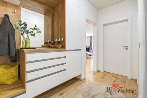 Nabízíme k prodeji nadstandardně řešený a světlý byt o dispozici 2+kk s užitnou plochou 60,5 m², situovaný v atraktivní a vyhledávané lokalitě Pardubic – ulice Na Spravedlnosti. Byt zaujme na první pohled svým moderním designem, vzdušností a důrazem na detail. Dominantou je prostorný obývací pokoj propojený s kuchyní vyrobenou na míru, která nabízí řadu chytrých a praktických prvků jako filtrace vody, rozkládací stůl, designové LED s možností regulace intenzity či elegantní držáky na víno. Na kuchyň navazuje jednotný nábytek v předsíni, což podtrhuje čistý a nadčasový styl interiéru. Celý byt je krásně prosvětlený přirozeným světlem a doplněný moderním osvětlením s možností ovládání přes mobilní telefon i dálkové ovladače. Samozřejmostí jsou oddělené světelné okruhy pro maximální komfort užívání. K bytu náleží lodžie pro příjemné posezení. Velkým benefitem je klimatizace v obou hlavních místnostech s možností ovládání na dálku, díky které si nastavíte ideální teplotu ještě před příchodem domů. Byt je dále vybaven novými dálkově odečitatelnými měřáky energií. K bytu je možné dokoupit zastřešené parkovací stání za cenu 400.000 Kč. Lokalita nabízí kompletní občanskou vybavenost. V docházkové vzdálenosti naleznete školy, školky, obchody, restaurace i zdravotnická zařízení. Výborná je také dopravní dostupnost do centra města. Tento byt představuje ideální kombinaci moderního bydlení, komfortu a skvělé lokality. Pro více informací nebo domluvení prohlídky mě neváhejte kontaktovat.
