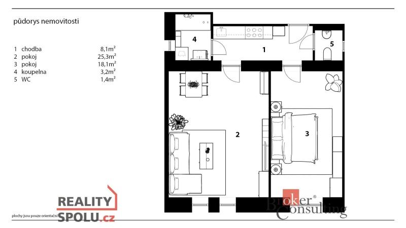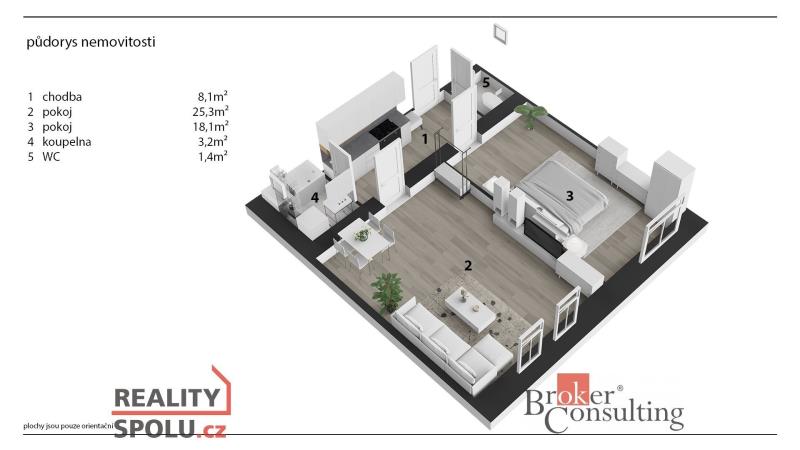 K prodeji, Byt 2+kk, 54 m2 Spojovací