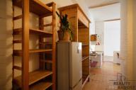 Byt nabízí velkorysý obytný prostor s kuchyňským koutem (cca 34 m2) a ložnicí oddělenou prosklenou příčkou (cca 10 m2). Součástí je dále koupelna s vanou a samostatné WC s oknem (viz orientační plánek). Okna obytné části jsou orientována na S a V, což zajišťuje dostatek ranního a dopoledního slunce, tedy radostný a optimistický vstup do nového dne. Okno na WC je orientováno na Z.