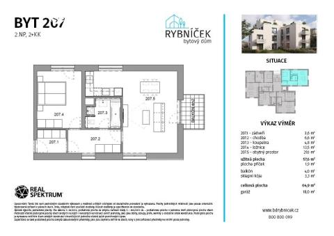 Ve výhradním zastoupení investora vám nabízíme moderní byt 2+kk s balkonem a vlastí garáží, který je součástí zcela nového čtyřpodlažního bytového domu v projektu Bytový dům Rybníček. K bytu dále náleží sklepní kóje, která poskytuje dostatek úložného prostoru.