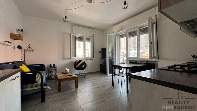 Byt se skládá z prostorné chodby, světlého obývacího pokoje s otevřenou kuchyní, dvoulůžkové ložnice a koupelny vybavené vanou i sprchovým koutem.