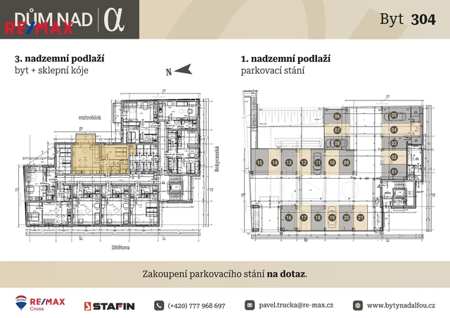 Ve společném garážovém prostoru se bude nacházet několik parkovacích míst, o jejichž aktuální dostupnosti Vám poskytneme více informací na dotaz.