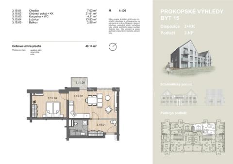 K prodeji Vám nabízíme tento byt 2+kk z roku 2021, s balkónem, garážovým stáním, sklepní kójí a půdním prostorem, který je přístupný z bytu. Lokalita: Hlubočepy (Barrandov) je jedna z nejprogresivnějších pražských částí, kde se staví nebo v nedávné době postavilo několik zajímavých projektů a lokalita se obydluje zejména mladými rodinami. V nejbližším okolí se nachází zastávka MHD, škola, obchody, pošta i sportoviště. Náš bytový dům se nachází v zástavbě rodinných domů, výhled z bytu je do zahrad na severo-západ. Do Chuchelského háje to je pěšky 10 minut, do Prokopského údalí 15 minut, bydlení je tedy vhodné pro lidi, kteří rádi relaxují v přírodě. Byt: - dispozice 2+kk, z bytu přístup na půdu (dalších 20 m2) - balkón - garážové stání - sklepní kóje - okna: dvojskla v antracitové barvě - kuchyně: Ikea, indukční varná deska - walk-in sprcha - závěsná toaleta (Geberit) - orientace bytu na severo-západ Orientační výměra prostor: Obývací pokoj + kuchyňský kout: 21,61 m2 Ložnice: 13,83 m2 Koupelna: 4,11 m2 Chodba: 7,03 m2 ----------------------------------- Celkem: 46,58 m2 + balkón: 2,56 m2 + půda přístupná z bytu: cca 20 m2 + garážové stání + sklepní kóje Byt je možné financovat hypotečním úvěrem. Zeptejte se nás na aktuální nejlepší úrokovou sazbu, zaručujeme vyřízení nejlepších možných podmínek a hladké vyřízení úvěru.