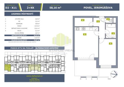 nabízíme Vám ke koupi nový moderní byt 2+kk, orientovaný na východ, situovaný v 5. NP bytového domu Jeremiášova ''D2'' v klidné a dlouhodobě vyhledávané lokalitě na ulici Jeremiášova v Olomouci.