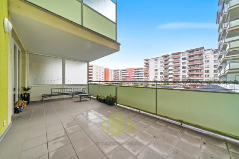 Byt je situován v prvním nadzemním podlaží sedmipodlažní moderní novostavby a je orientován na západ, což zajišťuje dostatek denního světla i příjemnou atmosféru během celého dne. Dominantou bytu je obývací pokoj s kuchyňským koutem řešeným na míru, ze kterého je přes francouzské okno přímý vstup na prostornou lodžii, která nabízí nadstandardní venkovní prostor pro posezení či relaxaci. Součástí bytu je dále samostatná ložnice, koupelna s vanou, umyvadlem, přípravou na pračku a otopným žebříkem, samostatné WC, předsíň a prostorná komora, která je v současnosti využívána jako šatna.