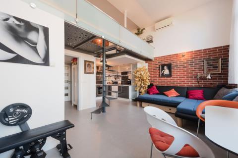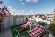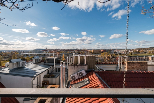 Nabízíme k prodeji jedinečný loftový byt o dispozici 2+kk s výměrou 53,6 m2 + terasa 21,5 m2 (celkem k užívání 75 m2). Bytová jednotka je umístěna v 6. a 7. patře (7. a 8. NP) cihlového domu s výtahem v ulici Tusarova, Praha 7 - Holešovice. Spodní patro sestává z předsíně, koupelny se sprchovým koutem a WC a hezkého loftového obývacího pokoje s kuchyňským koutem. V podkroví je velký otevřený prostorný pokoj sloužící jako ložnice a relaxační místnost a další toaleta. Největším bonusem bydlení je prostorná střešní terasa s nádherným výhledem na Prahu, která je ve výlučném užívání k jednotce. V bytě je také klimatizace. Vyhledávaná lokalita v blízkosti centra. Holešovice nabízí kompletní občanskou vybavenost a dobrou dopravní dostupnost (zastávka tramvaje Dělnická a metro Vltavská v docházkové vzdálenosti). V okolí je množství restaurací, kaváren, obchodů, fitness centrum a velmi oblíbená Holešovická tržnice.