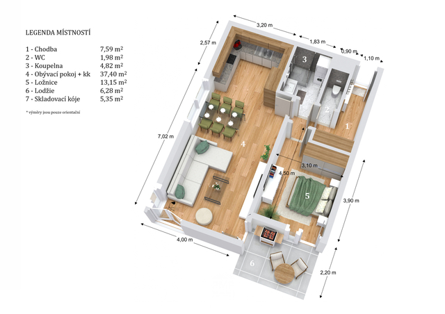 obývací pokoj s kuchyňským koutem 37,4 m²
