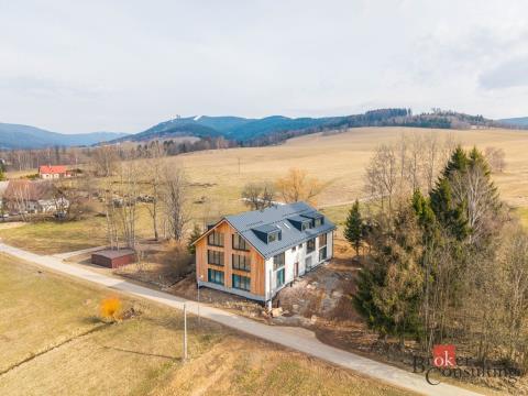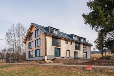 Nabízíme ke koupi prostorný a světlý apartmán 2+kk o podlahové ploše 76 m², který zaujme velkorysým obytným prostorem, promyšleným dispozičním řešením a jižní orientací zajišťující dostatek denního světla po celý den. Součástí apartmánu je komfortní samostatná ložnice, která poskytuje dostatek místa pro manželskou postel, úložné prostory a klidné zázemí pro odpočinek. Dominantou je rozlehlý obývací pokoj s kuchyňským koutem, prosvětlený velkoformátovými prosklenými okny. Ty propojují interiér s exteriérem a poskytují výhled na parkoviště a okolní zázemí. Obývací část nabízí prostor pro pohodlnou sedací soupravu, jídelní kout i kuchyňskou linku dle vlastních představ. Koupelna je navržena v kompletním standardu – se sprchovým koutem, umyvadlem a toaletou. V ceně apartmánu je zahrnuto vlastní parkovací stání a sklepní kóje, které zvyšují komfort a praktičnost užívání. Apartmán bude připraven k nastěhování v létě tohoto roku. Rádi pro Vás zajistíme i výhodné financování na míru. Ideální příležitost pro rekreační bydlení či investici v atraktivní horské lokalitě s celoročním využitím.