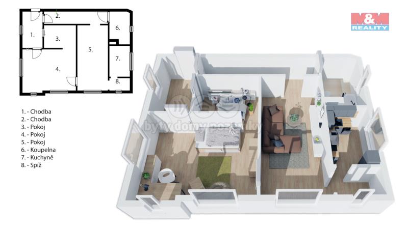K prodeji, Byt 2+1, 70 m2 Hynčice
