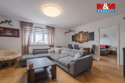 Nabízíme slunný byt 3+1 o velikosti 72 m² ve 3. patře cihlové zástavby (4 patra), kde dům i byt prošly kompletní rekonstrukcí. Byt má nové elektro a vodoinstalace, štukové omítky, zvětšenou koupelnu se sprchovým koutem a se dvěma okny, novou, plně vybavenou kuchyňskou linkou a zrestaurované parkety ve všech obytných místnostech. Obývací pokoj a jeden pokoj jsou orientovány na jih, kuchyně, koupelna a třetí pokoj na sever. Byt disponuje velkou chodbou s vestavěnou skříní. Díky vlastnímu komínu je možné napojení krbových kamen nebo vložky. K bytu náleží jeden zděný a jeden laťkový sklep a lze využívat kolárnu. Parkování přímo před domem. Nízké platby do fondu oprav. Pro více informací a prohlídku kontaktujte makléře, financování zajistíme v rámci kompletního hypotečního servisu.