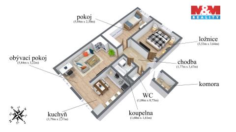 K prodeji, Byt 2+1, 63 m2 Most, M. G. Dobnera