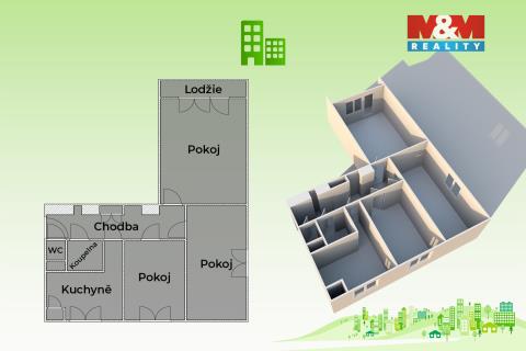 K prodeji, Byt 3+1, 60 m2 Rožnov pod Radhoštěm, Meziříčská