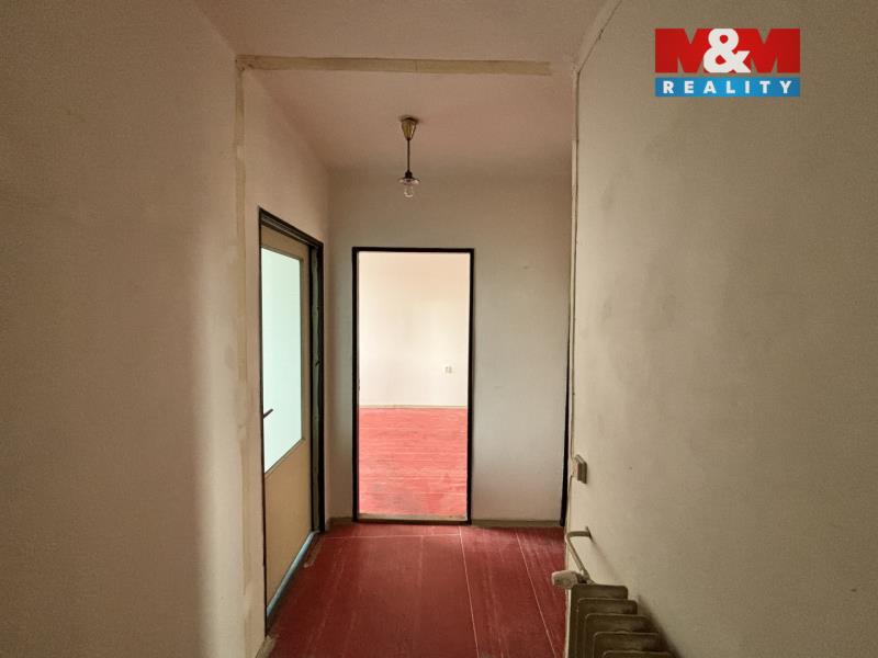 Nabízíme k prodeji byt s lodžií o dispozici 3+1, 65 m² v osobním vlastnictví, který se nachází v 1. patře zrekonstruovaného a zatepleného bytového domu bez výtahu. Stav je původní a ke kompletní rekonstrukci, díky čemuž si byt můžete upravit podle svých představ. Dispozice zahrnuje 2 obytné místnosti, další obytnou místnost s přístupem na balkon, samostatné WC, koupelnu a kuchyni s prostorem pro jídelní kout. Vytápění a ohřev vody zajišťuje plynový kotel. K bytu náleží sklep a možnost využívání společné kočárkárny. Lokalita nabízí kompletní občanskou vybavenost – v blízkosti najdete školu, školku, obchody, zdravotní středisko a další služby. Přímo před domem je dětské hřiště. Náklady na bydlení jsou velmi nízké. Nemovitost je tedy vhodná jak pro vlastní bydlení, tak i jako investiční příležitost.