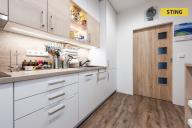 Součástí prodeje je kompletní vybavení kuchyně včetně elektrospotřebičů, bojler umístěný ve sklepě, plynový kotel, vestavěná skříň, policové systémy na míru v koupelně, osvětlení, lustry, garnýže a po dohodě také odkládací skříň na chodbě.