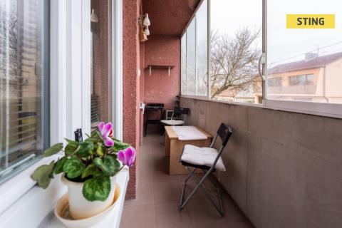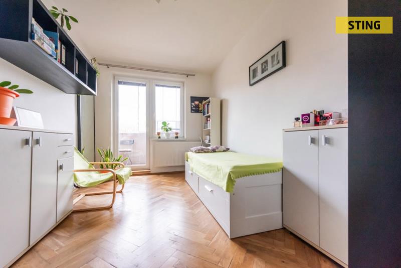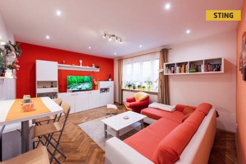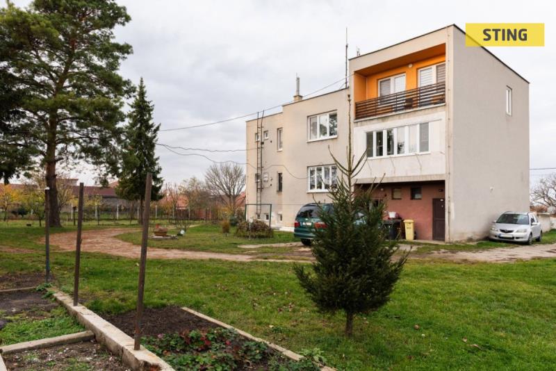 Dispozici tvoří prostorný obývací pokoj, kuchyně s jídelním koutem, dva další pokoje (z jdenoho je vstup na lodžii), koupelna, samostatné WC a předsíň. K bytu dále náleží dva sklepy, zahradní domek a možnost využívat malou zahrádku u domu. Parkování je možné přímo u domu.