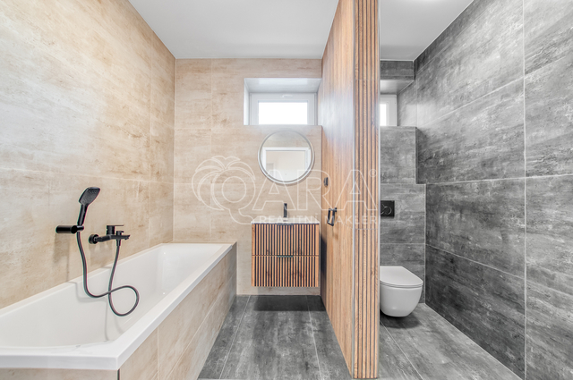 Nabízíme byt 3+1 o podlahové ploše 115 m², se samostatnou garáží, dílnou, krytou terasu a soukromý pozemek o výměře přibližně 950 m². Součástí nabídky je také prostorná půda nad bytem, kterou lze prakticky využít jako další úložný prostor. Hledáte komfortní bydlení v Beskydech v samostatné bytové jednotce, ale s benefitem vlastního zázemí a soukromí rodinného domu? Tato nově vznikající jednotka v druhém patře domu v Ostravici může být přesně tím, co hledáte. Jednotka 3+1 o podlahové ploše 115 m² zabírá celé horní patro domu, který prošel v roce 2024 kompletní rekonstrukcí. V bytě se nachází tři prostorné a světlé pokoje, kuchyně připravená k dokončení, koupelna s vanou a toaletou a dva balkony s krásnými výhledy. Jeden orientovaný na východ, druhý na jih. Každý pokoj nabízí dostatek prostoru pro ložnice, dětské pokoje nebo klidné pracovny. Celý interiér má nové sádrové omítky, vinylové podlahy v dekoru dřeva a keramickou dlažbu v koupelně. Všechna okna jsou plastová s trojskly. Dům je vytápěný pomocí tepelného čerpadla Viessmann vzduch voda. Rozvody topení jsou provedené v mědi. Půda je zateplená a střecha má kvalitní plechovou krytinu s ochranným nátěrem, což společně zajišťuje nízké provozní náklady. Bytová jednotka má vlastní vstup ze schodiště. K bytu náleží samostatná garáž o velikosti 30 m², dílna o ploše 9 m²,krytá terasa o velikosti 21 m² v přízemí a také prostorná půda, jako úložný prostor. Parkování je zajištěno také na vlastním venkovním stání pro dvě auta na zámkové dlažbě. Součástí jednotky je rovněž soukromá oplocená zahrada o výměře přibližně 950 m² s možností dalšího využití podle vašich představ. Zahradní domek poskytuje prostor pro sezónní vybavení či nářadí. Dům je napojen na elektřinu, veřejný vodovod a obecní kanalizaci. Celková koncepce nabízí možnost kvalitního a prostorného bydlení v jedné z nejvyhledávanějších oblastí Beskyd, s výbornou dostupností a klidným okolím. Pokud hledáte kombinaci moderního bytu a komfortu rodinného zázemí, rád vám tuto nabídku představím osobně. Brzy na viděnou.