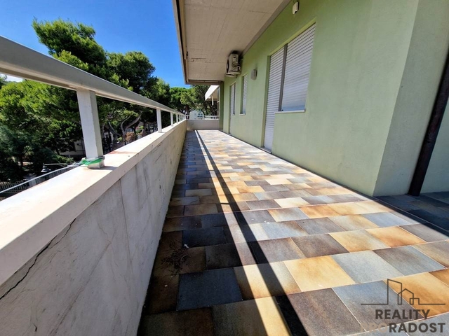 Jedním z hlavních benefitů této nemovitosti je velký balkon po celém obvodu bytu, odkud se otevírá panoramatický výhled na moře. Ideální místo pro venkovní stolování, relaxaci nebo sledování východů slunce nad mořem.