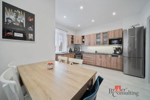 Bydlení, které kombinuje prostor, klid a centrum města v jednom. Některé byty vás zaujmou velikostí, jiné polohou. Tento byt nabízí obojí — a k tomu přidává něco, co je v této lokalitě skutečně výjimečné. Prostorný byt o dispozici 3+1 s celkovou plochou 121,6 m² (samotný byt 108 m²) se nachází v klidném, zděném domě se třemi bytovými jednotkami. Zabírá celé patro, což zajišťuje maximální soukromí, dostatek světla i pocit skutečného domova, nikoliv anonymního bytového domu. Velkým benefitem je příslušenství, které je v této lokalitě naprostou raritou. K bytu patří dva sklepy, z nichž jeden slouží jako garáž, a navíc máte k dispozici vlastní parkovací stání přímo před domem. To vše pouhé tři minuty chůze od hlavního Krakonošova náměstí. Přestože jste doslova pár kroků od centra, lokalita zůstává klidná a příjemná. Ideální jak pro ty, kteří chtějí mít město na dosah ruky, tak pro ty, kteří pracují v nemocnici — ta je vzdálena přibližně jednu minutu pěšky. Byt je vhodný pro zájemce, kteří nechtějí řešit rekonstrukce, ale hledají hotové bydlení, kam se mohou rovnou nastěhovat. Prostor, praktičnost a výborná poloha z něj dělají skvělou volbu jak pro rodinné bydlení, tak pro komfortní městský život. Pokud vás nabídka oslovila, rád vám na vyžádání zašlu virtuální prohlídku, která vám umožní projít si byt detailně ještě před osobní schůzkou.
