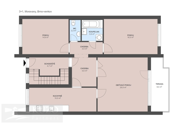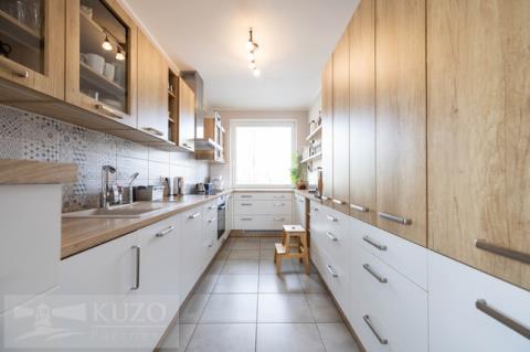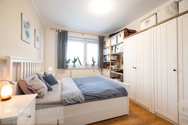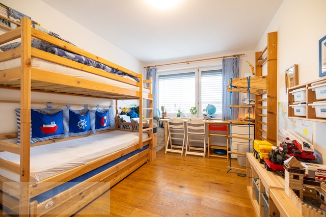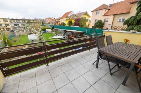 Byt o celkové ploše 128m2, 3+1 disponuje lodžií o velikosti 8 m². Velkým bonusem je samostatná jednotka 1+kk ( 20m2) s vlastní koupelnou v suterénu se samostatným vstupem, kterou lze případně propojit s dětským pokojem z garsoniéry je vstup na terasu a zahradu. K bytu dále náleží dva sklepy, společná kolárna a upravená zahrada s vyvýšenými záhony se závlahou.