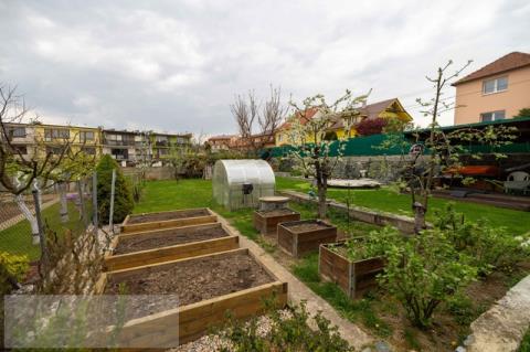 Zahrada je v přední části společná se vstupem z ulice, v zadní části je částečně rozdělena terénním schodkem. K dispozici je studna se zahradním čerpadlem určeným k zálivce, bez rozvodu vody do domu.