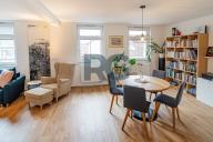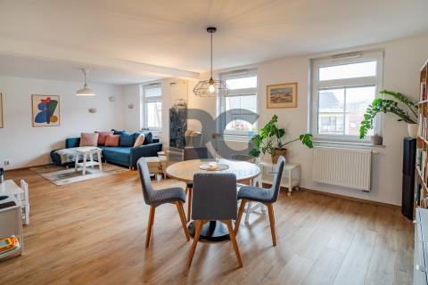 Exkluzivně nabízíme k prodeji nadstandardní mezonetový byt o dispozici 3+1 s balkonem. Byt o výměře podlahové plochy 134 m2 nabízí v dolní části světlý obývací prostor spojený s jídelnou, plně vybavenou kuchyni, předsíň a samostatnou toaletu; v patře se nachází dvě ložnice a koupelna s toaletou. Z obývacího prostoru se vstupuje na prosluněný balkon situovaný do zahrady domu. Kuchyňská linka disponuje spotřebiči - varná deska, digestoř, trouba, mikrovlnná trouba, myčka. Koupelna je spojená s toaletou a je zde umístěný sprchový kout, vana, dvě umyvadla. Zázemí pro pračku a sušičku je taktéž v koupelně. V bytě se nachází dva úložné prostory o výměře 0,98m2 a 1,64 m2. V dolní části bytu jsou okna opatřena žaluziemi, všechna okna mají zatemňující rolety. K bytu náleží zděný sklep a podíl na společných částech domu a pozemku. Pro více informací a sjednání prohlídky mě neváhejte kontaktovat.
