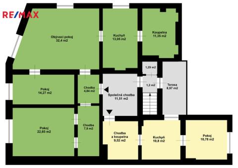 Ve výhradním zastoupení vlastníka si vám dovoluji nabídnout jedinečnou příležitost. Ke koupi nabízíme celé horní patro a půdu v domě přímo na náměstí v Českém Brodě. Tato nabídka je ideální jak pro vlastní bydlení, tak pro investory hledající zajímavé výnosové nemovitosti s dalším potenciálem rozvoje. V horním patře momentálně najdete 2 byty, společnou chodbu a terasu. Byt o dispozici 3+1 a velikosti 107 m² Velmi prostorný, světlý byt připravený k okamžitému nastěhování nebo pronájmu. Nabízí dostatek prostoru i pro velkou rodinu a příjemnou atmosférou s výhledem na náměstí. Byt o dispozici 1+1 a velikosti 31 m² Menší byt ve fázi před dokončením – ideální příležitost pro realizaci vlastních představ či budoucí pronájem. Současně s byty můžete užívat také půdu, 2 garáže a společný pozemek za domem. Půdní prostor o velikosti 140 m² Rozsáhlá půda vhodná k vestavbě dalších bytových jednotek. Zajímavý investiční potenciál pro další rozšíření. 2 garáže + podíl na pozemku za domem Praktické zázemí doplňuje pohodlné parkování a užívání společného pozemku ve vnitrobloku. Dům je do současnosti obýván a udržován. Přízemí domu slouží ke komerčním účelům a není součástí prodeje. Dům je napojen na elektřinu, kanalizaci, vodovod a plynovod. Díky své vynikající dopravní dostupnosti do Prahy, může být Český Brod zajímavou alternativou pro pražské bydlení. V Českém Brodě je plná občanská vybavenost. Najdete zde školy, školky, kompletní síť obchodů a služeb. Vlakem se dostanete do centra Prahy za 30 minut a autem za 20 minut na Černý Most.