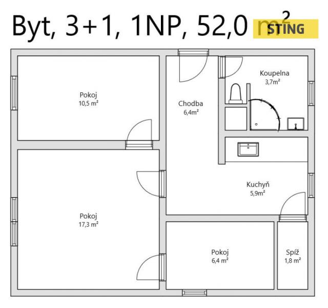 K prodeji, Byt 2+kk, 63 m2 Ježov
