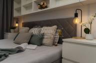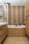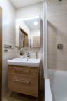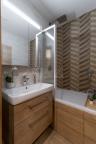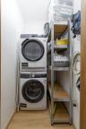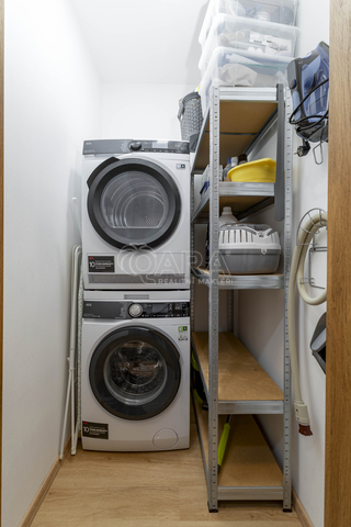 Velkou výhodou je také samostatná šatna, ve které je umístěna pračka a sušička. Toto řešení výrazně zvyšuje komfort bydlení, jelikož koupelna zůstává bez rušivých spotřebičů.