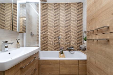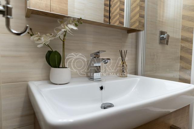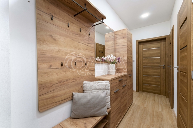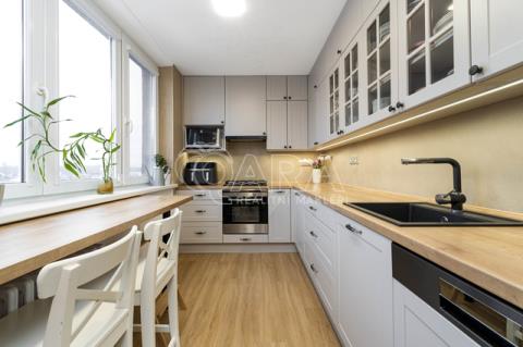 Byt je umístěn v 8.NP v panelovém domě s výtahem a před pěti lety prošel rekonstrukcí. Nabízí praktické a funkční dispoziční řešení, které poskytuje dostatek prostoru jak pro společné rodinné chvíle, tak pro klid a soukromí. Díky velkým oknům je byt příjemně světlý a působí vzdušně. Prostorná kuchyň v rustikálním stylu potěší každého, kdo si rád užívá vaření.
