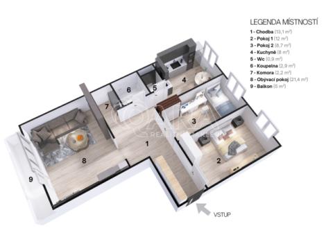 K prodeji, Byt 1+1, 53 m2 Ostrava, Korunní
