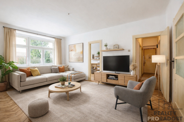 Hledáte zděný byt 3+1 v původním stavu, protože si ho chcete předělat podle svých představ? Pak se přijeďte podívat do Sezimovy ul., kde v přízemí cihlového domu najdete prostorný byt 3+1 s centrální chodbou se vstupy do jednotlivých místností. Předností bytu jsou vyměněná plastová okna, dvě komory, prostorný obývací pokoj a strategická poloha. Vše v původním stavu určeném k rekonstrukci. Ústřední dálkové topení, oddělené WC, koupelna s vanou, kuchyně se spíží. Parkety, dlažba, sklepní koje v suterénu domu. Parkování před domem. Měsíční náklady do 6.000,- Kč vč. FO.