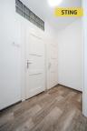 Vstup do bytu - prostorná chodba s vestavnou skříní na míru (botník, panel na odkládání svršků). Z chodby je vstup do koupelny se zděným jádrem, která je vybavena vanou, umyvadlem se skříňkou, obklady a dlažbou a také do samostatného WC. V obou případech je velkou výhodou okno zajišťující přirozené větrání a denní světlo. V koupelně je také místo pro pračku a plynový kotel.