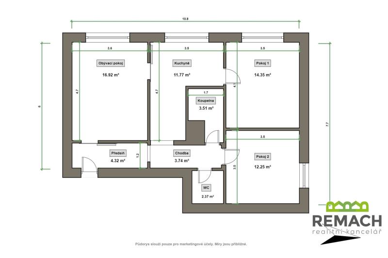K prodeji, Byt 3+1, 78 m2 Uherské Hradiště, J. E. Purkyně