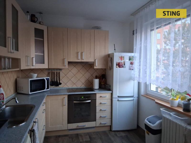 Nabízíme k prodeji byt 3+1 s balkonem ve 3. patře panelového domu. Bytová jednotka se skládá ze 7 místností včetně příslušenství: kuchyně, tří pokojů, koupelny, samostatného WC, předsíně a balkonu. Do všech místností je vstup z chodby, do kuchyně je vstup z obývacího pokoje. V kuchyni se nachází rohová kuchyňská linka se všemi potřebnými spotřebiči – myčka na nádobí (nová, dosud nepoužitá), sporák s elektrickou troubou, lednice s mrazákem a pračka. Koupelna je vybavena jak sprchovým koutem, tak i vanou. Okna z kuchyně a obývacího pokoje jsou orientovány na severní stranu, dva další pokoje jsou situovány na jižní světovou stranu, což zajišťuje dostatek denního světla. K bytu náleží sklepní kóje v přízemí domu. V okolí je veškerá občanská vybavenost – škola, školka, poliklinika, obchody a výborná dostupnost do centra (cca 5 minut). Přímo pod domem se nachází dětské hřiště. Byt je již 2 roky pronajímán, a proto je vhodný také jako investiční příležitost. Do konce března 2026 nabízíme prostřednictvím našeho partnera úrokové sazby od 4,29 % p.a. Více informací Vám sdělí náš specialista na prohlídce.
