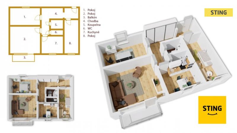 Nabízíme Vám ke koupi velmi udržovaný byt v osobním vlastnictví o dispozičním řešení 3+1 s balkónem, který se nachází v 2. nadzemním podlaží domu na ulici Strnadova v Brně části Lišeň. Nemovitost disponuje třemi neprůchozími pokoji, prostornou kuchyní, koupelnu s rohovou vanou a samostatným WC. V roce 2015 proběhla rekonstrukce koupelny a WC, včetně elektřiny a podhledů. Z obývacího pokoje je výstup na balkón. V předsíni je umístěná vestavěná skříň. V blízkosti domu je škola, školka, hřiště pro děti, veřejné parkoviště, nedaleko obchody, pošta. Pro více informací a prohlídku bytu mne kontaktujte. Do konce prosince 2025 nabízíme prostřednictvím našeho partnera úrokové sazby od 4,29 % p.a. Více informací Vám sdělí náš specialista na prohlídce.