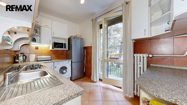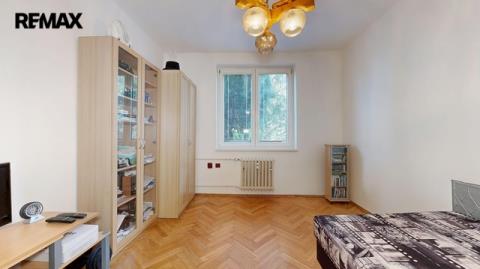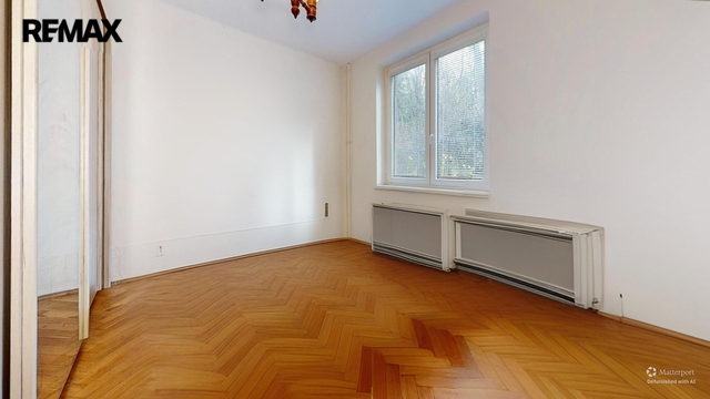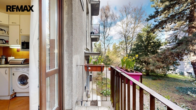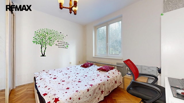 Byt v cihlovém domě 3+1 s balkónem 1,8 m2, s koupelnou s vířivou vanou 2,5 m2, samostatnou toaletou 0,9 m2 a kuchyní 7,8 m2. Jednotlivé místnosti jsou spojeny chodbou 10,4 m2 s vestavěnými skříněmi. Dvě ložnice s výměrou 12,4 m a 12,8 m2, obývací pokoj 20,5 m2 s lodžií 2,5 m2. V suterénu je zrekonstruovaný sklep s ocelovými pozinkovanými dveřmi a regály cca 4 m2 a společná místnost 32 m2. Byt má na podlaze parkety a je vytápěn litinovými radiátory s centrálním plynovým kotlem umístěným v domě. Dům je obklopený stromy a keři připomínající park, vstup do lesa je 50 m od vchodu. Toto klidné prostředí je vhodné pro malé děti a lidi, co v přírodě hledají relaxaci. Nedaleko je i obchodní centrum na Novodvorské NOVO PLAZA, kde vyřídíte všechny nákupy. 3D sken bytu je na tomto odkazu: https://my.matterport.com/show/?m=7FkC5zA7ntb Prodávající si vyhrazuje právo vybrat kupujícího na základě jím zvolených kritérií.