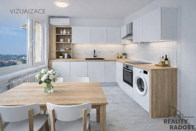 Představte si bydlení ve slunném bytě v 8. patře, odkud se z balkonu nabízí příjemný výhled na město a okolí Znojma. Právě takový byt o dispozici 3+1 po celkové rekonstrukci Vám nyní nabízím na ulici Sokolovská ve Znojmě. V současné době patří tento byt mezi velmi málo dostupné byty dispozice 3+1 v této části Znojma, což z něj činí zajímavou příležitost pro vlastní bydlení i investici. Podlahová plocha bytu činí 69,7 m². K bytu dále náleží prostorný balkon o velikosti 4,2 m², sklepní kóje o výměře 2,1 m² a také praktická komora přímo v bytě, která poskytuje další úložný prostor. Byt prošel celkovou rekonstrukcí a nadstandardně je vybaven klimatizací se dvěma samostatnými jednotkami, která zajišťuje komfortní bydlení i v horkých letních měsících. Praktická dispozice bytu 3+1 nabízí tři samostatné pokoje, které poskytují dostatek prostoru pro rodinné bydlení, práci z domova i soukromí jednotlivých členů domácnosti. Byt je prodáván bez kuchyňské linky, což umožňuje novému majiteli navrhnout si kuchyň přesně podle vlastních představ. Pro instalaci nové kuchyně je již připraven kompletní prostor včetně potřebných vývodů elektřiny, plynu, vody i odpadů. Dům je udržovaný a nachází se v klidné spodní části města s dobrou dostupností jak do centra Znojma, tak i směrem do Rakouska. V okolí domu je navíc k dispozici pohodlné parkování zdarma. V blízkém okolí se nachází kompletní občanská vybavenost – obchody, školy, školky, zastávky MHD i možnosti pro volnočasové aktivity. Součástí prezentace jsou také vizualizace možného zařízení jednotlivých místností, které ukazují potenciál a možnosti budoucího uspořádání bytu. Rád Vám byt osobně představím na prohlídce a ukážu všechny jeho výhody přímo na místě.