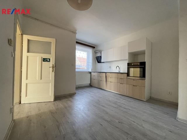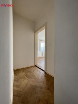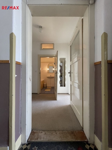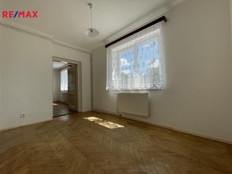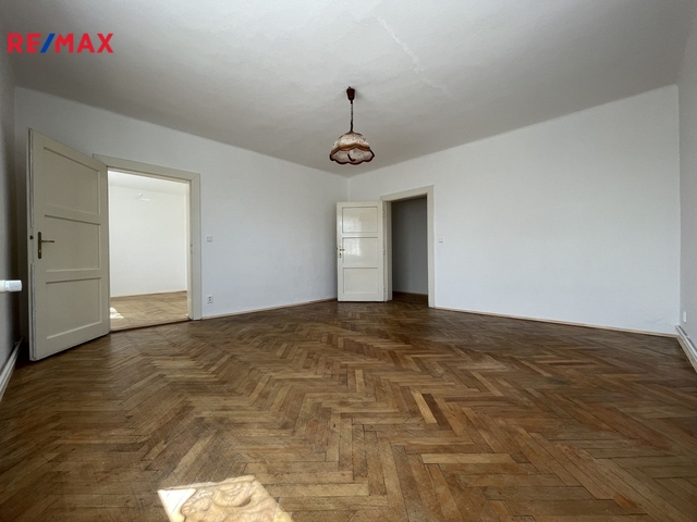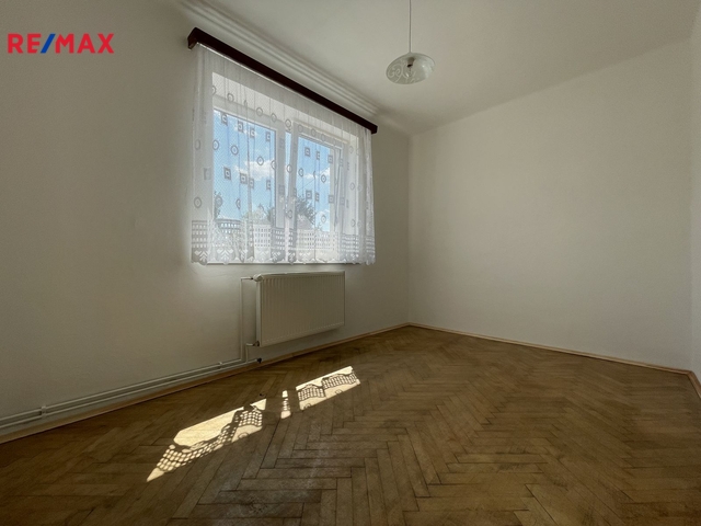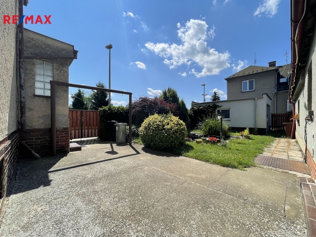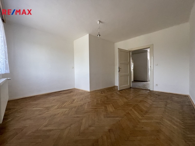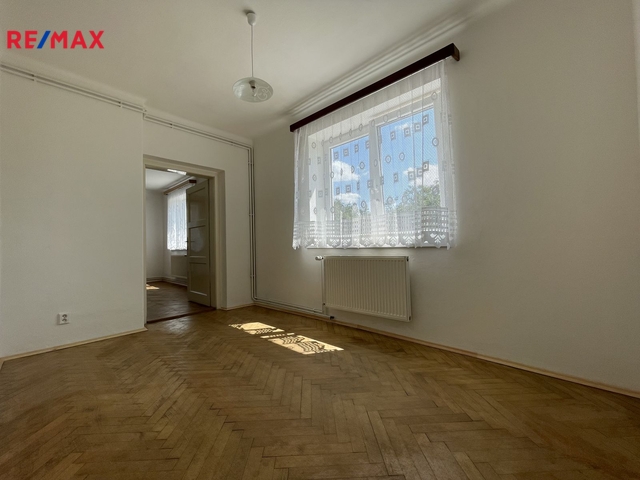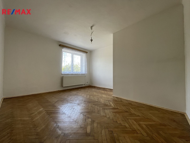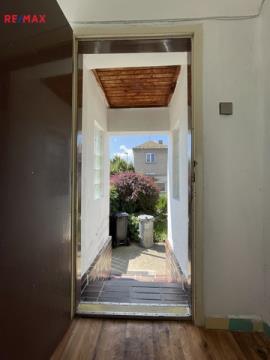 Hledáte bydlení v klidné lokalitě se zahradou, dostatečným parkováním u domu a blízkou vzdáleností na MHD? Tato nabídka prodeje bytu 3+1 o rozloze cca 82 m² v 1.NP Vás jistě zaujme! Exkluzivně nabízíme prodej spoluvlastnického podílu ve výši 1/2 na RD, který zahrnuje byt 3+1 (82 m²) v 1.NP, vlastní garáž, společné užívání zahrady a dvorku (cca 105 m²), společné půdní a sklepní prostory. Na pozemek RD se vstupuje brankou na zahradu s dvorkem či z druhé strany vjezdem ke garáži (20 m² z roku 2016). Při vstupu do domu se nacházíte na společné chodbě, odkud vedou vstupy do předmětného bytu, sklepních prostor či schody do patra, kde se nachází balkón ve společném užívání a dále lze pokračovat do půdních prostor. V předmětném bytě rekonstruovaném v roce 2005 (elektřina, voda, odpady) se nachází vstupní předsíň (4,7 m²), 3 neprůchozí pokoje (24 m²; 18,5 m²; 10,7 m²), kuchyň (13 m²) se spíží (1 m²) a průchodem do jednoho z pokojů (2,4 m²), koupelna (4,2 m²) s vanou (stáří 2 roky) a samostatné WC (1 m²). V bytě jsou plastová okna z roku 2016. Dům je napojen na obecní vodovod, kanalizaci, el. a plyn. Elektřina v bytě je v mědi. Krytina střechy je pokryta eternitem. Byt má zajištěný ohřev tepla i vody plynovým kombinovaným kotlem umístěným v koupelně bytu. Podlaha obytných pokojů je pokryta parketami, v kuchyni je kombinace PVC a koberce, v koupelně a WC je dlažba, ve vstupní předsíni je koberec. Nemovitost bude v budoucnu vyžadovat rekonstrukci střechy a hydroizolaci domu. Zajistíme Vám konzultaci možné koupě této nemovitosti – bezplatně s našim finančním poradcem. Více fotografií na stránkách RE/MAX. Bližší informace u makléře nabídky.