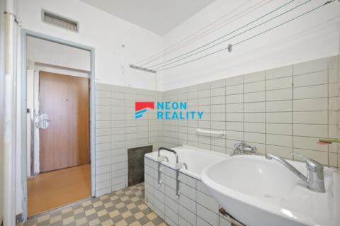 Bytové jádro je zděné, s průchozí koupelnou, která překvapí svou velkorysou velikostí – na panelový dům opravdu neobvyklou.