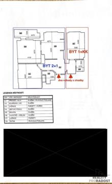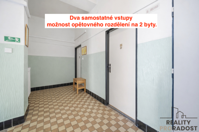 Dva byty, nyní jeden – možnost opětovného rozdělení Nabízím k prodeji byt o dispozici 3+1 nacházející se v centru Pardubic, v ulici Sladkovského. Byt je umístěn ve 3. nadzemním podlaží zděného (cihlového) činžovního domu bez výtahu. Zcela zásadní výhodou této nemovitosti je skutečnost, že byt vznikl spojením dvou samostatných bytových jednotek. Tento stav je dodnes patrný jak z půdorysu, tak i fyzicky – na společné chodbě jsou zachovány dva samostatné vstupy do bytu (aktuálně je využíván pouze jeden). BYDLENÍ ZDARMA – to nemusí být jen představa. Pokud by Vám stačil k užívání byt 2+1, je zde velmi zajímavá možnost oddělit část bytu (garsonku) a tu pronajímat. Příjem z pronájmu může pokrýt Vaše měsíční náklady na bydlení. Zároveň se jedná o velmi zajímavou příležitost i pro investory – byt lze poměrně jednoduše stavebně rozdělit na jednotky 2+1 a garsonku, bez nutnosti složitých dispozičních zásahů. Velkou výhodou domu je vlastní zahrada ve vnitrobloku, což je v centru města příjemný benefit. Zahradu lze využívat nejen k odpočinku, ale také je zde možnost parkování automobilů. Dispozice bytu: vstupem se dostáváte do centrální chodby, kde jsou po celé její ploše snížené stropy s praktickým úložným prostorem. Po pravé straně se nachází komora s pračkou, která odpovídá původní koupelně menší bytové jednotky (1+kk), na niž navazuje samostatný pokoj. Dále se z chodby vstupuje do kuchyně s jídelní částí, na kterou navazuje obývací pokoj se vstupem na balkon. Z chodby je dále přístup do druhé koupelny s toaletou a do ložnice. Celková užitná plocha bytu činí 79,4 m² + 5,5 m² balkon. K bytu náleží prostorný sklep. Pro více informací mě prosím kontaktujte. Realitní makléř Martin Socha