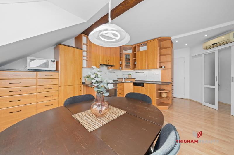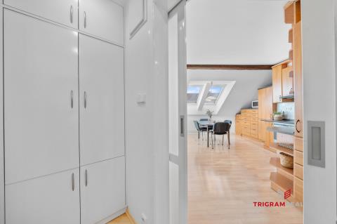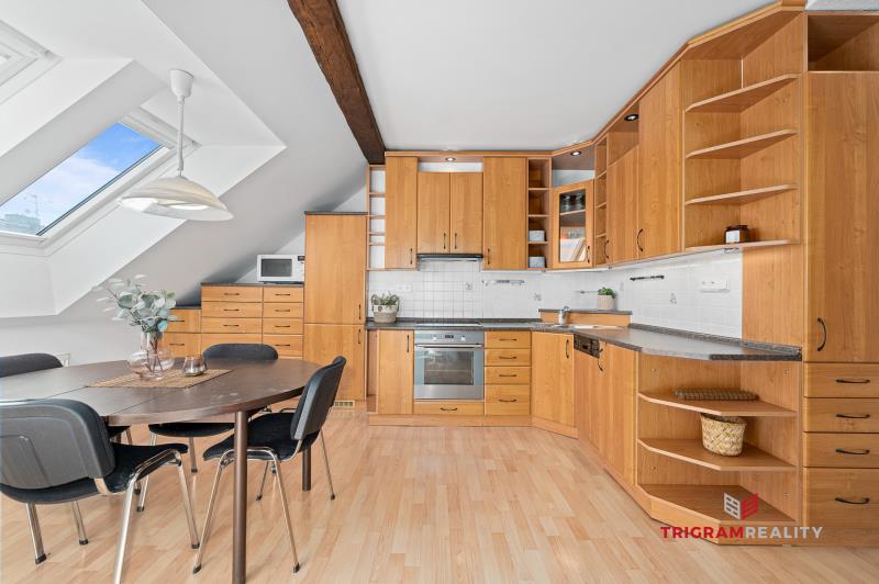 Ráda Vám zprostředkuji prodej atypického podkrovního bytu 3+1 v samotném centru Hradce Králové, ulice Klumparova, nedaleko pěší zóny. Byt se nachází v 5. NP bez výtahu, a tak zde najdete naprosté soukromí a klid. Nabízí prostorné pokoje, klidné bydlení a užitnou plochu o rozloze cca 89 m2 + 4 m2 sklep. Ke společnému užívání je k dispozici zahrada ve vnitrobloku. Stavba samotné bytové jednotky proběhla v roce 1991. Následně v roce 2005 výměna střešních oken za nová značky Velux se stíněním, zateplení stěn, sádrokartonové příčky, včetně stropu v koupelně. Rekonstrukce střechy proběhla před cca 14 lety. Tři samostatné, světlé a vzdušné pokoje zajišťují dostatek komfortu. Vlastní plynový kotel zajišťuje topení i teplou vodu — náklady na energie jsou přehledné a efektivní. Celkové náklady na energie, vodu a topení při plné obsazenosti bytu rodinou se 2 dětmi jsou kolem 4.500,- Kč + ostatní zúčtovatelné zálohy a příspěvek do FO, celkem 2.900,- Kč. Kompletní občanskou vybavenost najdete doslova několik kroků od samotného bytu. Možnost krytého parkování se nabízí v nedalekém parkovacím domě za poplatek. Byt je aktuálně dlouhodobě pronajatý, a tak se nabízí možnost vhodné investice a pokračování nájmu s již ověřeným nájemcem. Případně volný po dohodě, anebo po ukončení nájemní smlouvy. Pokud Vás oslovila tato nabídka, doporučuji Vám prohlídku. V případě, že zvažujete financování HÚ, rádi Vám zajistíme kompletní servis včetně financování, a garantujeme vrácení rezervace v případě nezískaní úvěru.