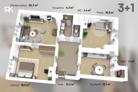 K prodeji, Byt 3+kk, 74 m2 Žiželice, Komenského