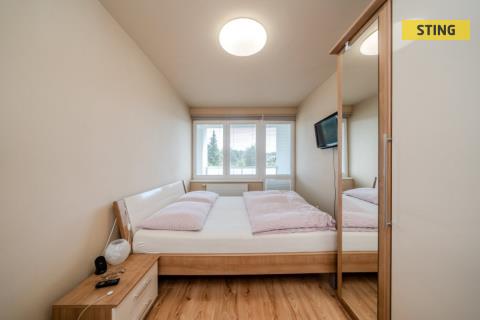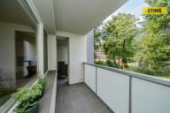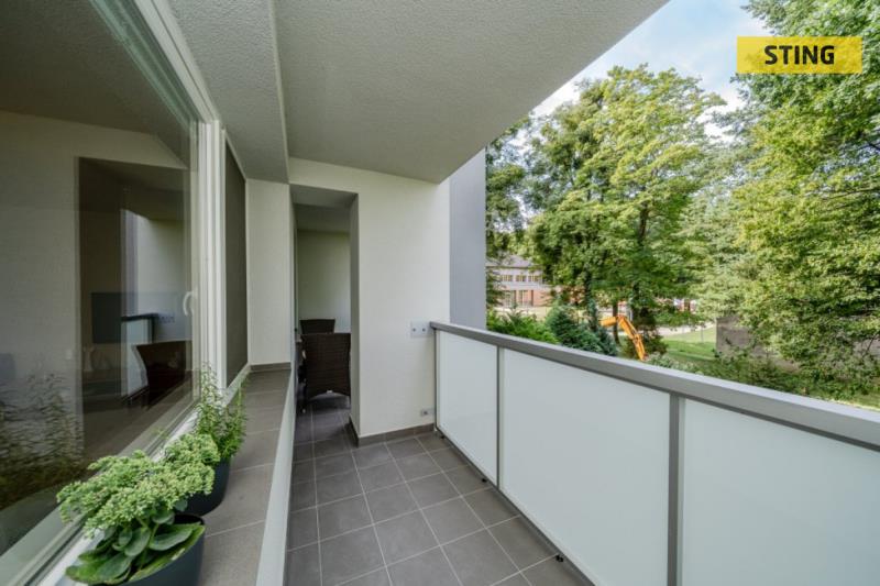 Byt prošel rekonstrukci před 10.lety a je ve velmi zachovalém a udržovaném stavu. Obrovskou výhodou jsou neprůchozí slunné pokoje. Z obou pokojů je vstup na balkón, obývací pokoj s výhledem do parku, má po celé své délce taktéž balkón s posezením. Velkorysá chodba vybízí dostatek místa k vyhotovení vestavěných skříni. Taktéž komora je skvělým pomocníkem pro uskladnění věci, či ji lze využít jako šatnu. Koupelna s vanou, umyvadlem a umyvadlovou skříni se zrcadlem, obklady a dlažba. Kuchyně s kuchyňskou linkou, plynovým sporákem, elektrickou troubou a digestoří, myčka. Na chodbě, v pokojích a obývacím pokoji je položená plovoucí podlaha, v kuchyni dlažba.