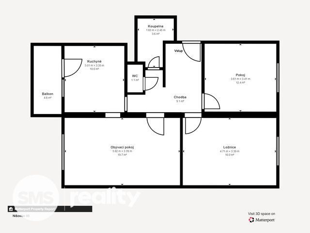 Dispozice bytu je praktická, přehledná a velmi dobře prosvětlená, což vytváří příjemný základ pro moderní rekonstrukci. Vytápění zajišťuje elektrokotel s rozvodem do radiátorů, ohřev vody je řešen bojlerem.